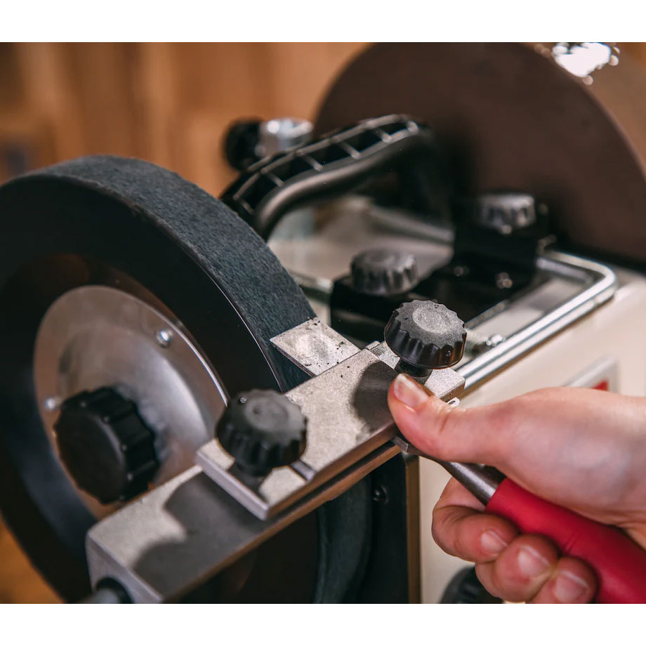 Leather Strap Wheel for removing burrs and polishing edges to a razor sharpness with Autosol honing compound. Fits Jet JSSG-10 Wet Sharpener.