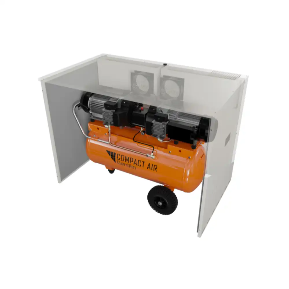 Gentilin COMFORT 90/1 on ääntä eristävä kotelo, joka on suunniteltu Gentilin Clinic sarjan 230V kompressoreihin. Kotelo vähentää kompressorin melua -12 desibeliä dB(A).