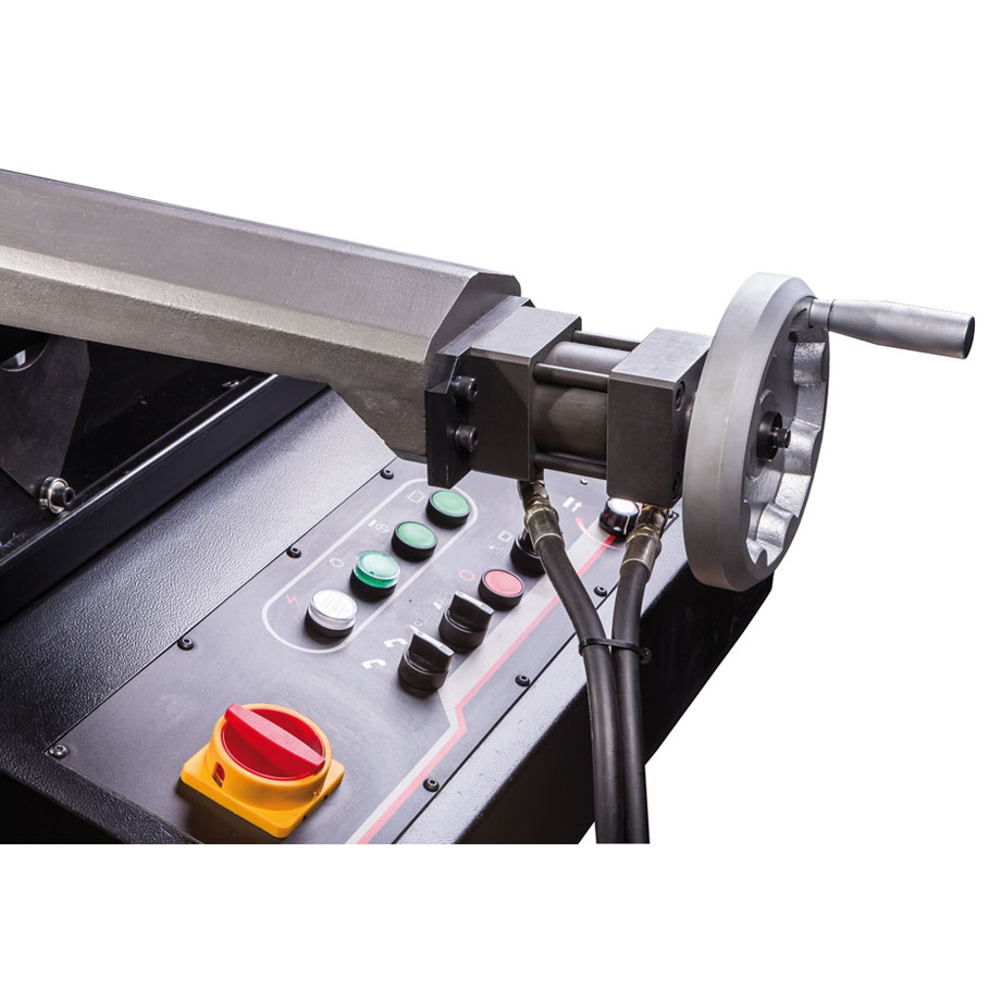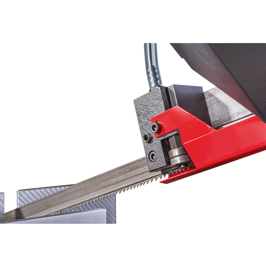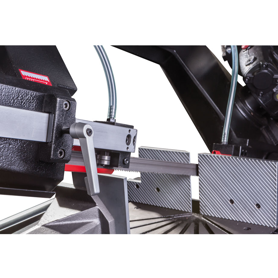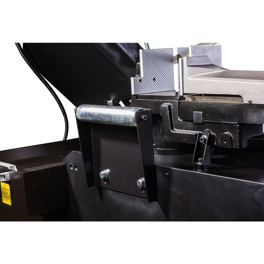 Vakiovarustukseen sisältyy korkealaatuinen 27 x 0,9 x 3160mm Bi-metalliterä, digitaalinen kierroslukunäyttö, jäähdytysjärjestelmä, hydraulinen laskusylinteri, materiaalirajoitin, sahajalusta keruualtaalla, teränopeustaulukko, pikatoiminen ruuvipuristin ja hätä-seis painike.