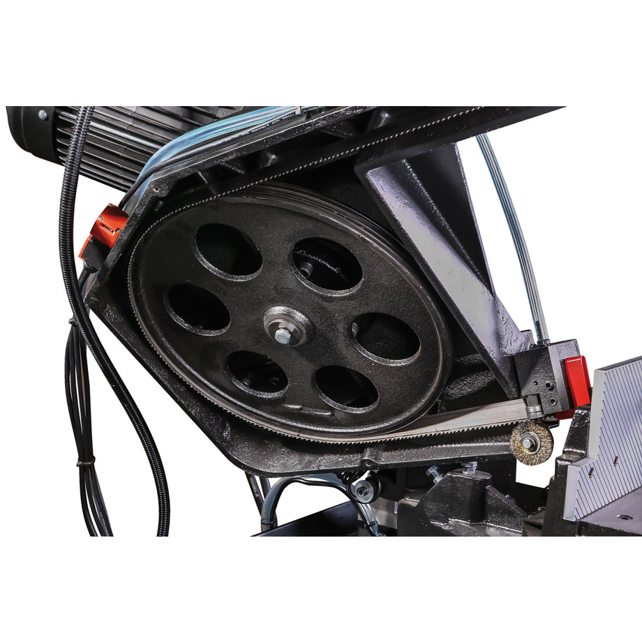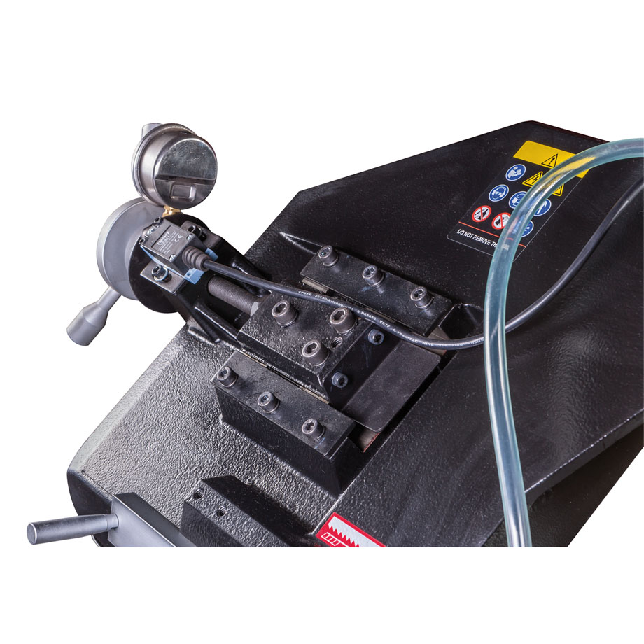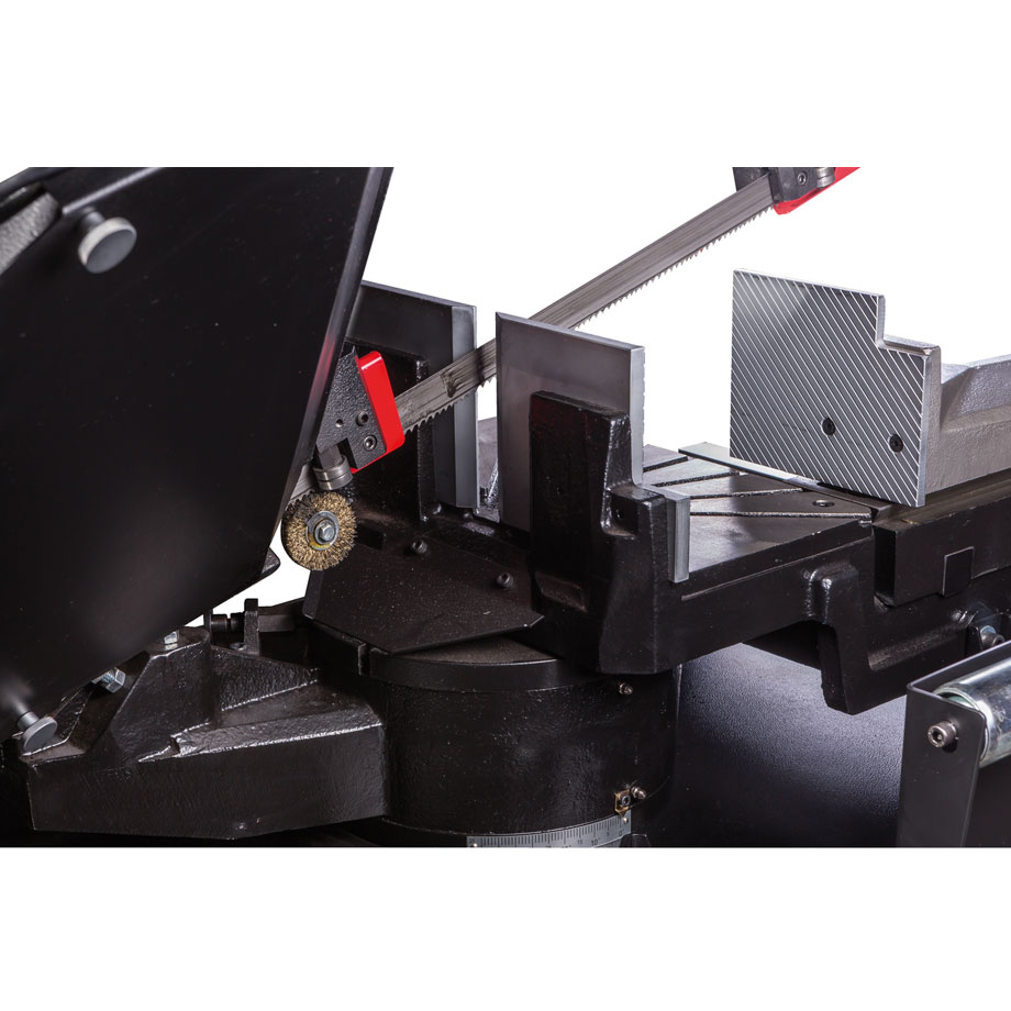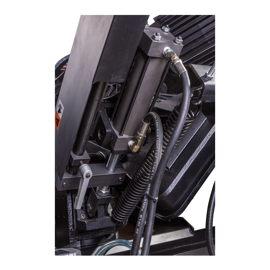 Vakiovarustukseen sisältyy korkealaatuinen 27 x 0,9 x 3160mm Bi-metalliterä, digitaalinen kierroslukunäyttö, jäähdytysjärjestelmä, hydraulinen laskusylinteri, materiaalirajoitin, sahajalusta keruualtaalla, teränopeustaulukko, pikatoiminen ruuvipuristin ja hätä-seis painike.