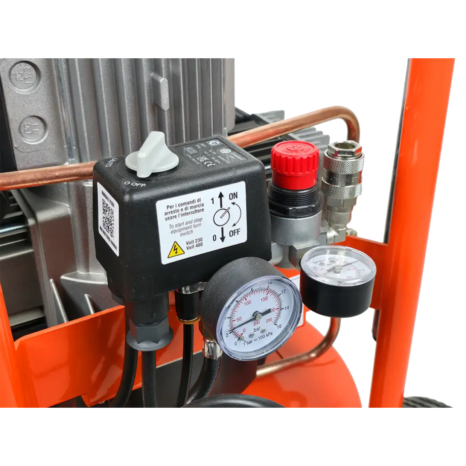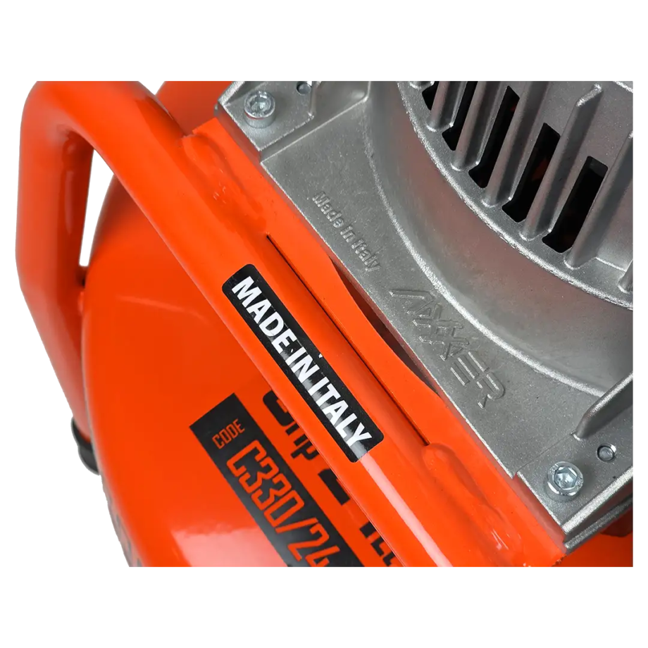Italiassa valmistettu Gentilin C330/24 öljytön kompressori on varustettu teräksisellä 24 litran säiliöllä ja tehokkaalla 2200W moottorilla, jonka vapaa tuotto on 330 l/min ja maksimipaine 10 bar.