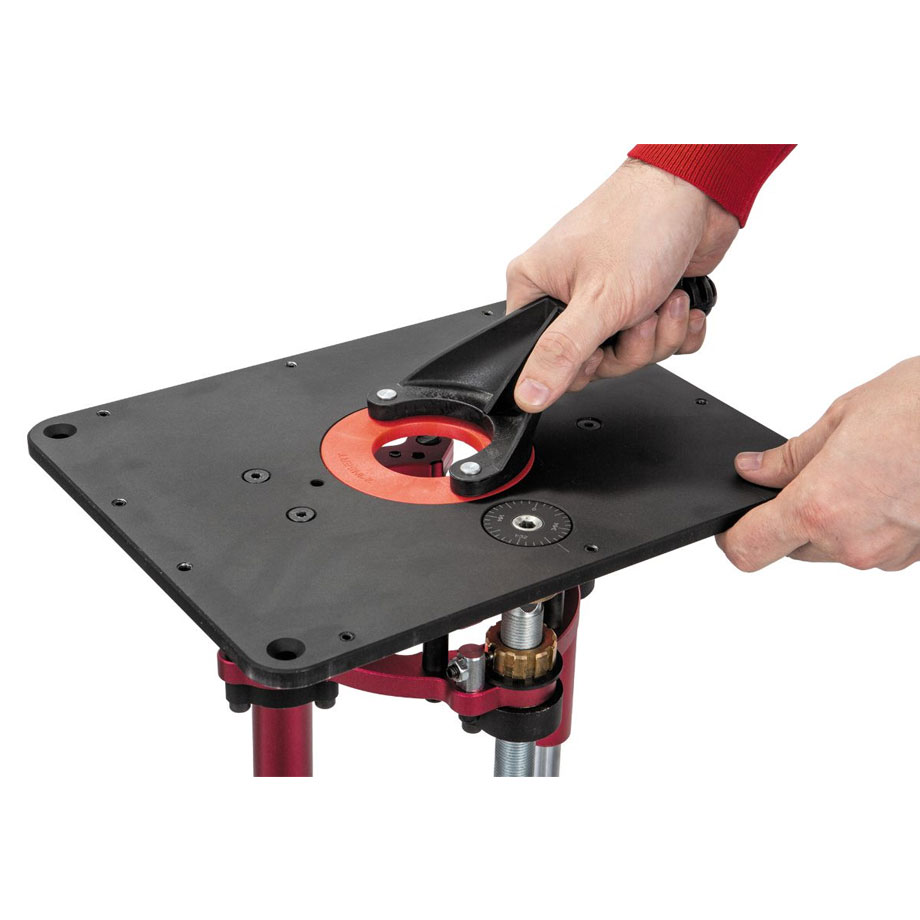 - Terän korkeus on helppo säätää pöydän päältä pyöritettävällä veivillä