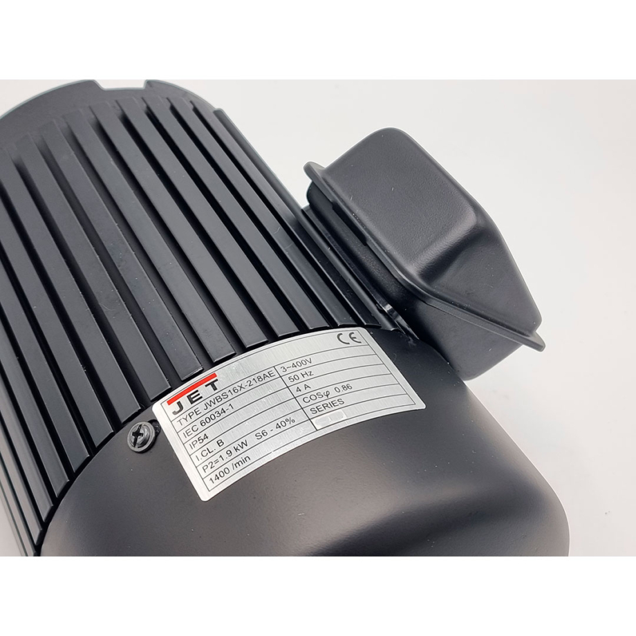 JWBS16X-218AE Sähkömoottori 1.9kW 400V esimerkiksi Jet JWBS-16X vannesahalle. Akseli ø 19 x 65mm. Taiwanissa valmistettu alkuperäinen moottori.