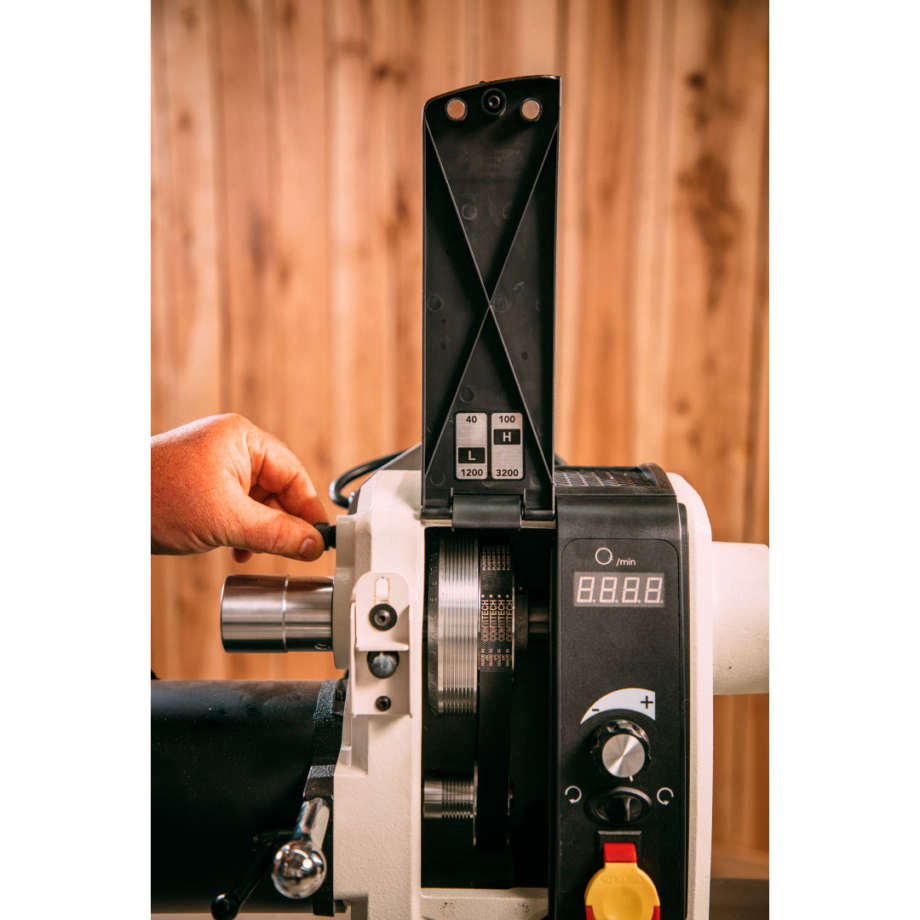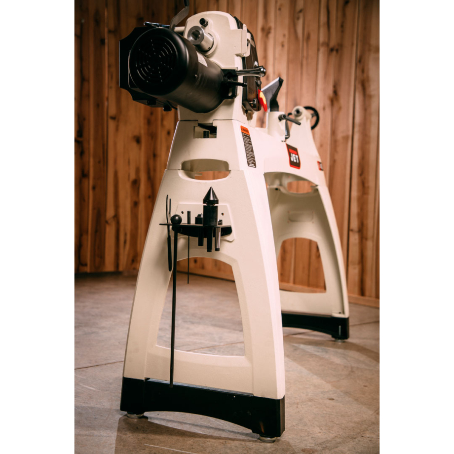 Jet JWL-1640EVS on erinomainen puusorvi ammattikäyttöön ja oppilaitokselle. Puusorvissa on siirrettävä ja kääntyvä sorvauspää, suunnanvaihto, digitaalinen kierroslukunäyttö sekä portaaton nopeudensäätö 40 – 3200rpm kierroslukualueella. Suuri 16″ (418mm) sorvaushalkaisija ja 1000mm kärkiväli riittävät hyvin jo vaativien ammattilaisten ja oppilaitoksien sorvaustarpeisiin.