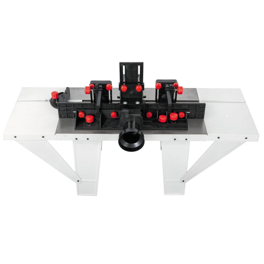 Pöydässä on ⌀ 83mm aukko, jossa mahtuu pyörimään isompikin jyrsinterä. Mukana tulevilla supistusrenkailla saat tiivistettyä pöydän aukon sopivaksi myös kaikista pienemmillekin terille.