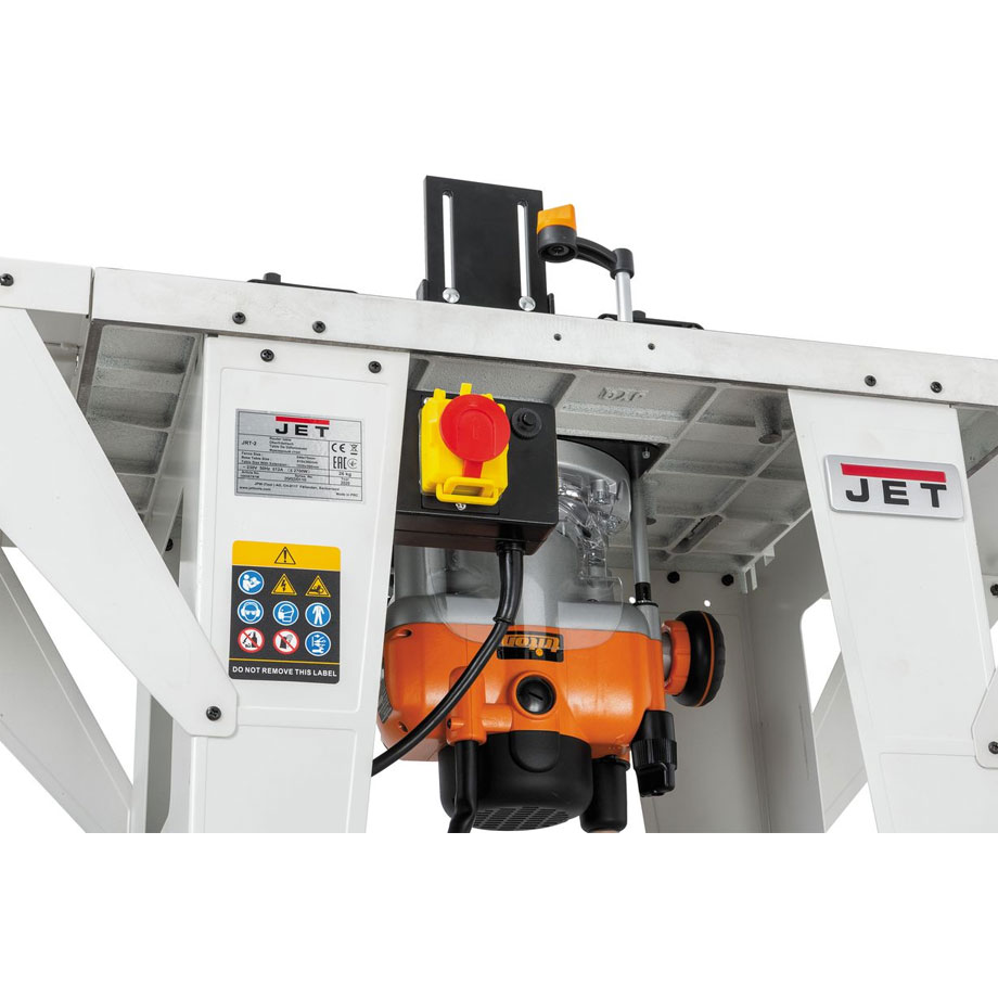 Jet JRT-2 on harrastekäyttöön suunniteltu jyrsinpöytä, jonka avulla voit käyttää käsiyläjyrsintä kiinteänä jyrsimenä. Paksusta valuraudasta valmistettu pöytätaso ja metalliset sivupöydät tarjoaa hyvän tukevuuden ja suuren työskentelyalueen, jolla on mukava käsitellä pidempiäkin kappaleita.