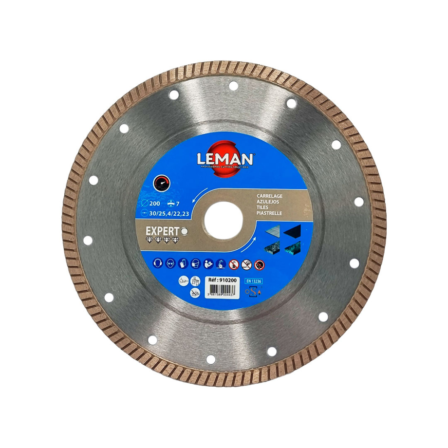 Huippulaadukas Leman Expert 200 x 30mm timanttilaikka laatan, graniitin, betonin, marmorin, luonnonkiven ja muiden rakennusmateriaalien märkä- ja kuivakatkaisuun. Mukana 22.23 ja 25.4 mm supistajat, joilla saat sovitettua laikan lähes mihin tahansa laattaleikkuriin tai kulmahiomakoneeseen.