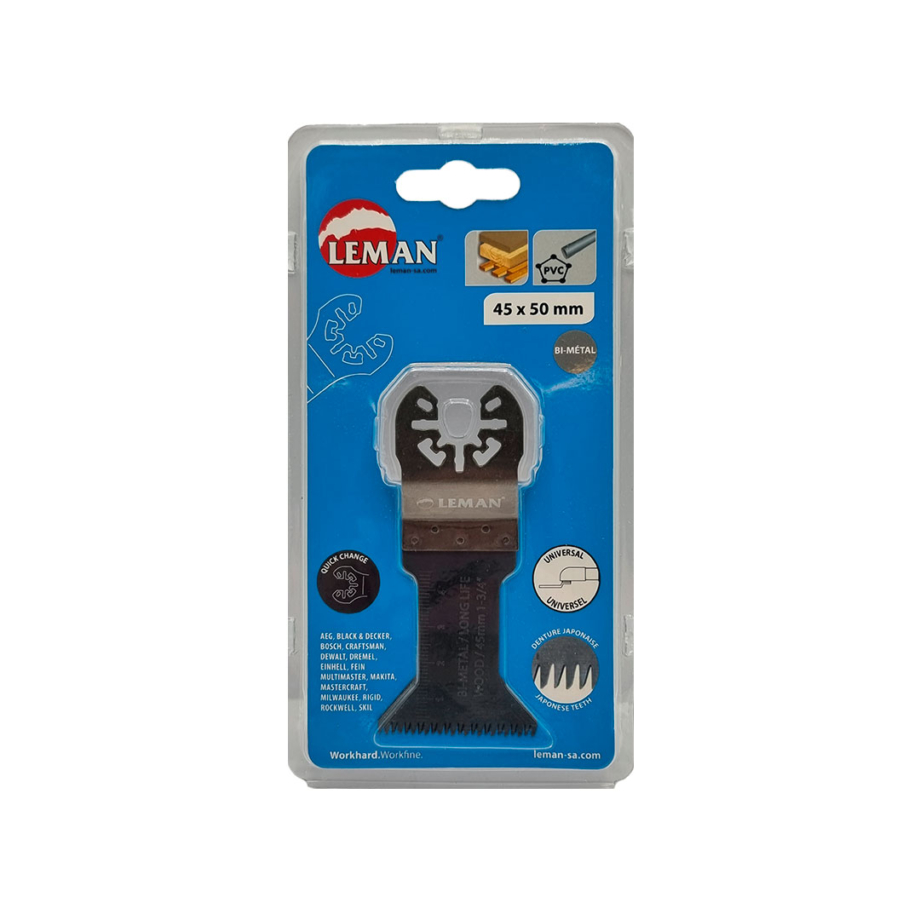 Tehokas ja pitkäikäinen monitoimityökalun terä ”Japanese Tooth” hammastuksella puun, muovin ja lastulevyn siistiin sahaukseen. Terän leveys 45mm ja sahaussyvyys 50mm.