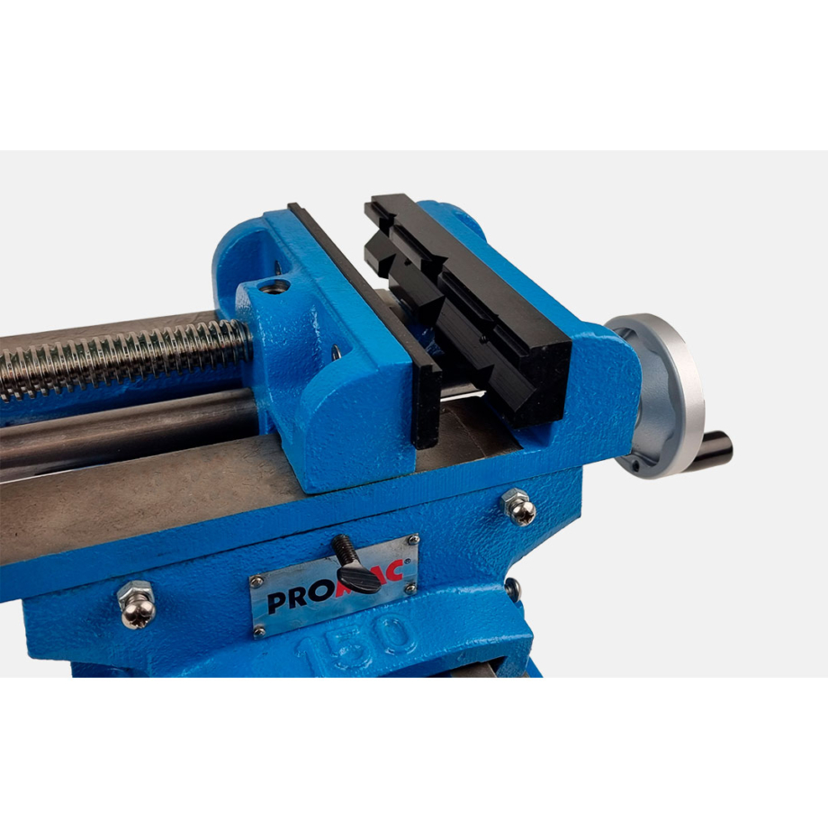 Promacin ammattikäyttöön suunniteltu ristisyöttö koneruuvipenkki 150 x 40mm leuoilla ja 135mm puristusleveydellä. Tukeva, tarkka ja erittäin sulavatoiminen koneruuvipenkki vaativaan käyttöön. Universaali malli, joka sopii lähes kaikkiin pylväsporakoneisiin.