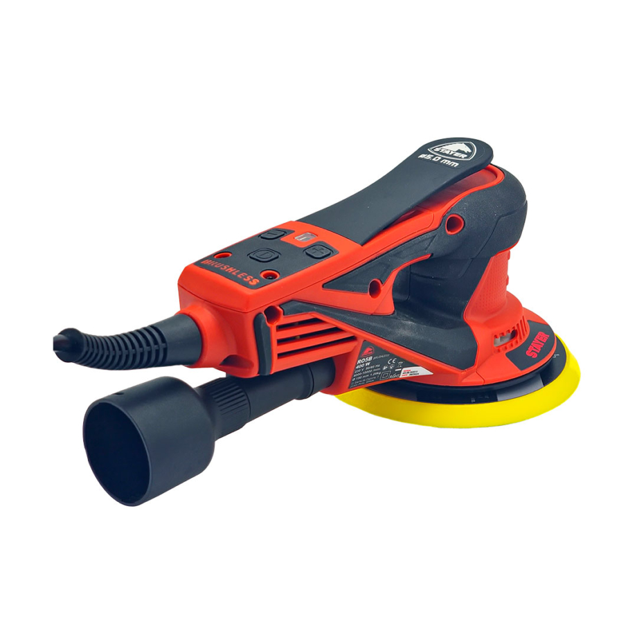 Stayer RO5 on kevyt ja kompaktin kokoinen 150mm epäkeskohiomakone, jossa on hiljainen ja pitkäikäinen hiiliharjaton 400W moottori, 7 eri nopeusasetusta ja tachometer elektroniikka, joka pitää kierrosluvun tasaisena myös kovassa kuormituksessa.