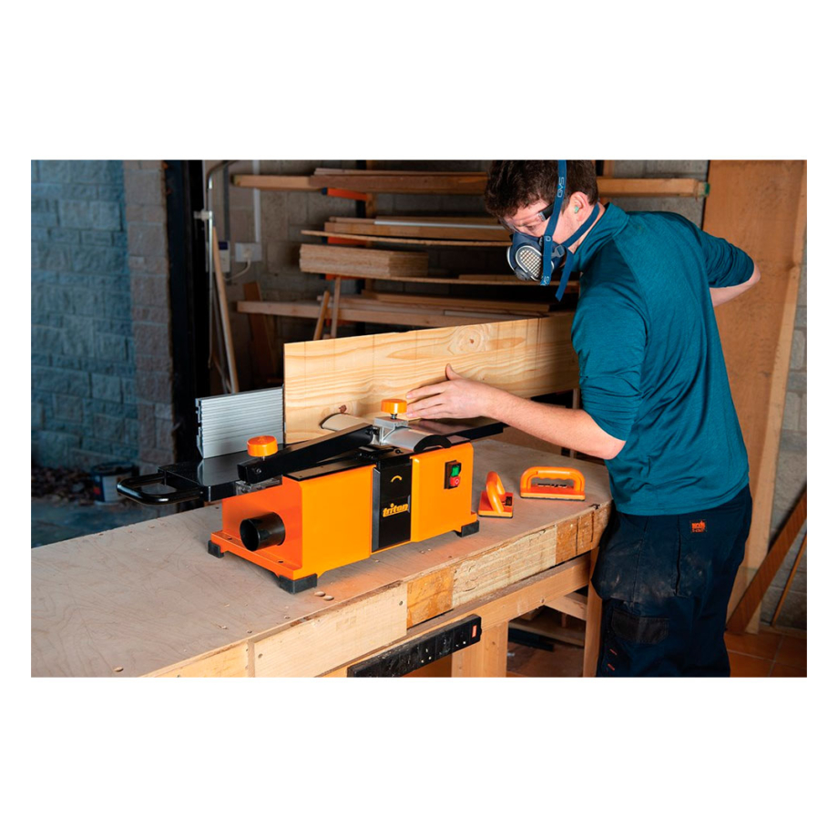 Kaksiteräinen 8000 kierrosta minuutissa pyörivä 18% HSS kutteri tarjoaa laadukkaan höyläysjäljen kaikille puumateriaaleille. Kompaktin kokonsa ansiosta laite vie vähän tilaa ja sitä on helppo siirrellä tai kuljettaa mukana.